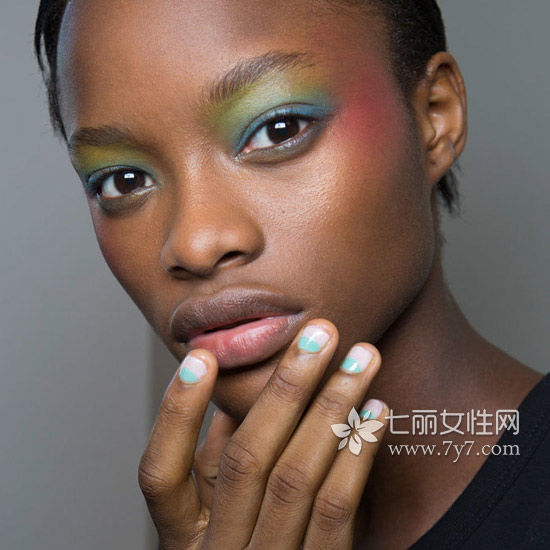 Alexis Mabille Spring 2016:绿色和裸粉色美甲