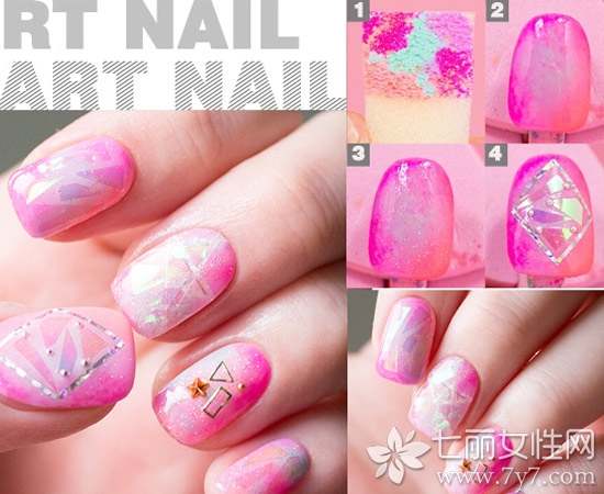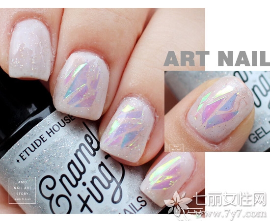 最近火爆的Bling Bling玻璃美甲,混搭出一种未来感,灵动的玻璃片还能反射出粉蓝的颜色,还显得非常炫酷呢,自己DIY也非常简单哟~