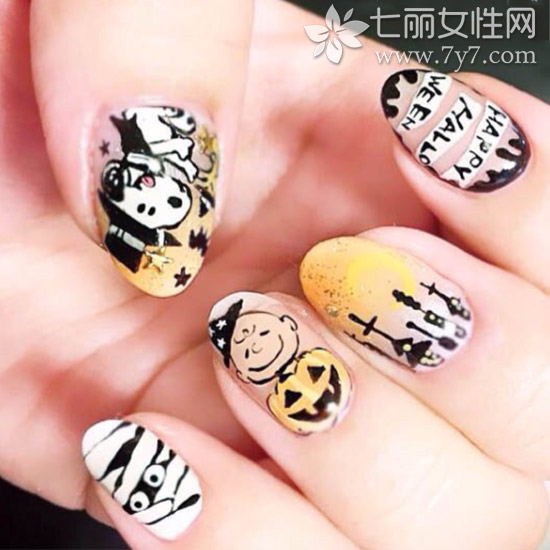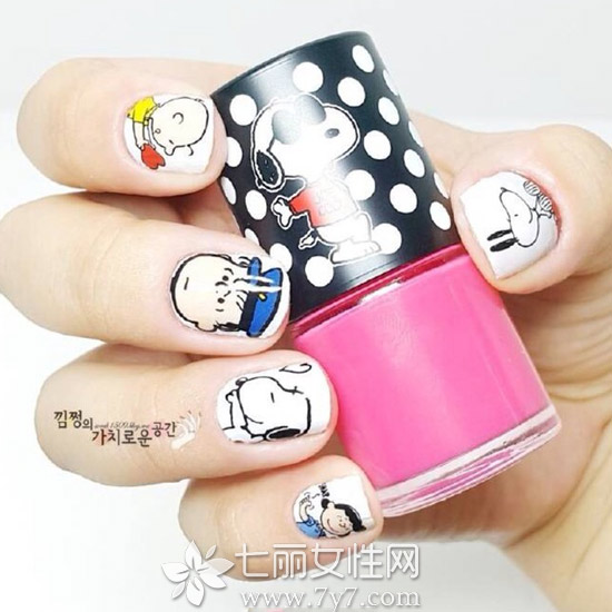 史努比美甲图片,近期各类卡通人物中,曾经淡出我们视野的史努比因为和彩妆品牌合作而又重新火热了起来,连带着又让我们这些小公举们童心泛滥了。新年也快来了,今天就来给大家推荐一款适合新年的史努比美甲吧!