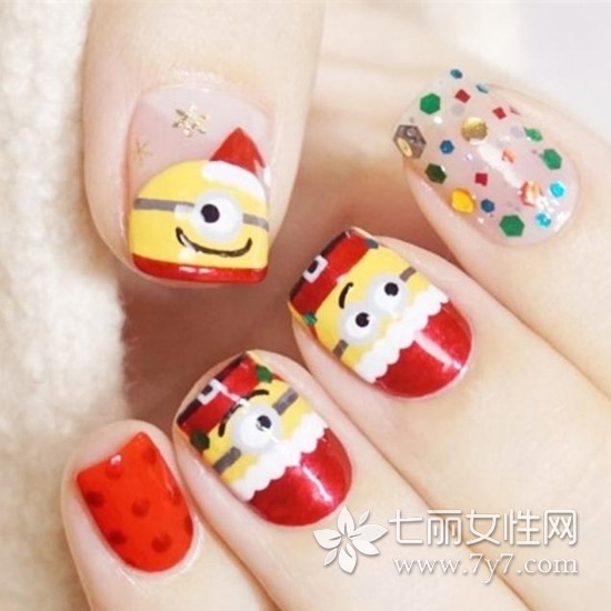 小黄人美甲图片,都说入乡要随俗,外来的小黄人,就是再受欢迎,遇到迎新这种大case,搭配上象征喜庆的红色,那也依旧是萌萌哒~