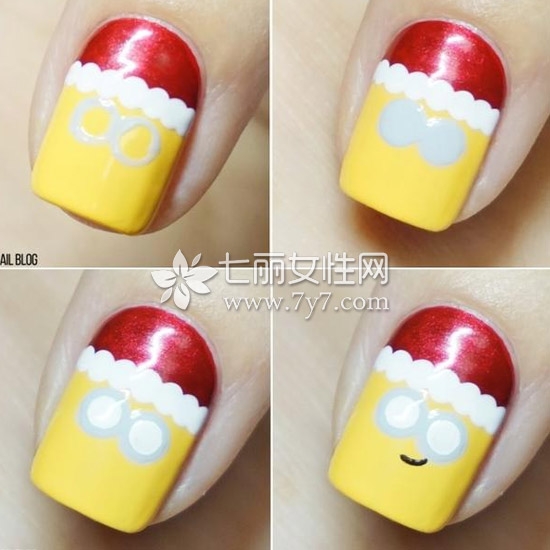 小黄人美甲图片,小黄人美甲教程图片,小黄人指甲的制作过程