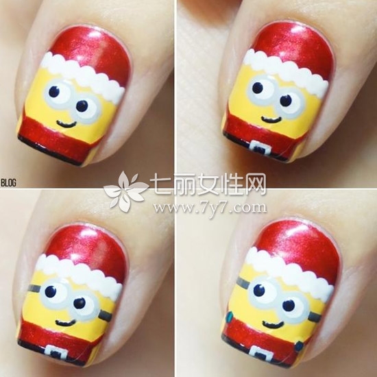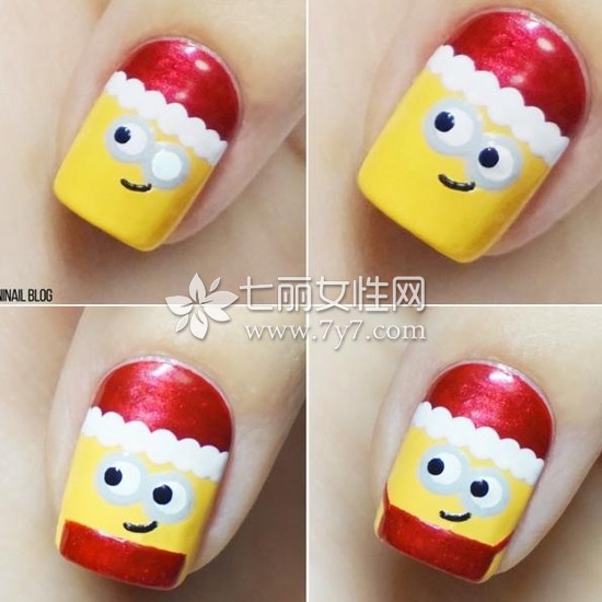 小黄人美甲图片