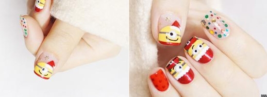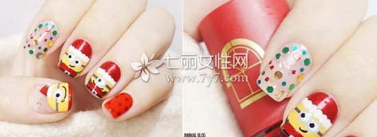 小黄人美甲图片,都说入乡要随俗,外来的小黄人,就是再受欢迎,遇到迎新这种大case,搭配上象征喜庆的红色,那也依旧是萌萌哒~