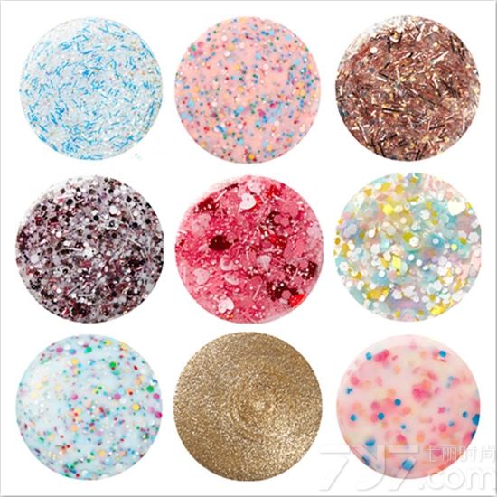 结合不同的闪粉和甲油胶,随心所欲地搭配颜色,分分钟就能搭配出很多种不同的新胶出来!搭配好了,你就是调胶师!