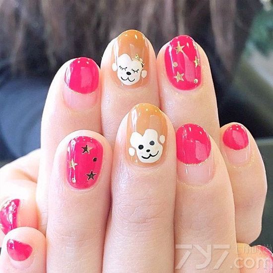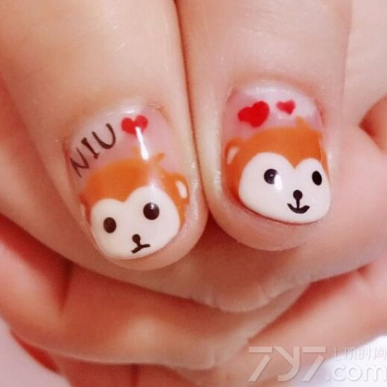 2016年卡通猴子美甲,猴子图案美甲款式,卡通猴子美甲图片