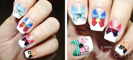 美少女战士美甲图片,美少女战士蝴蝶结美甲,漫画少女美甲款式图片