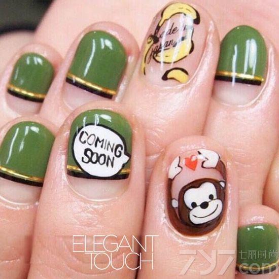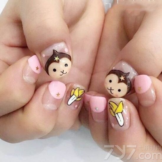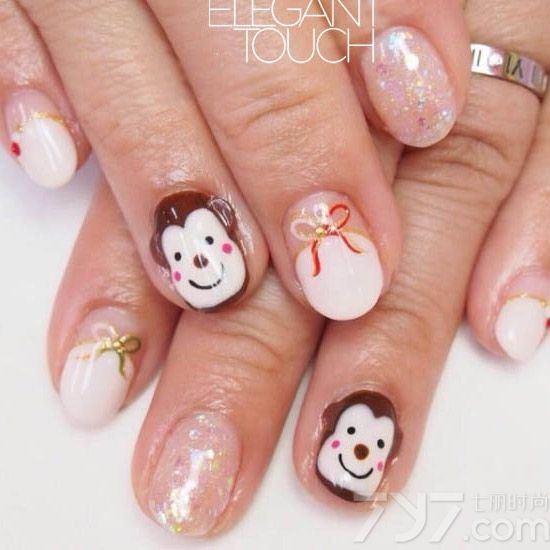 猴子图案美甲图片,每一生肖年,很多品牌都会迎合一下,今年是猴年,很多大牌都相继推出了自己的猴年产品。作为个人来说,是不是也应该迎合一下呢?不如画一只猴子在指甲上吧,来一款猴子图案美甲。