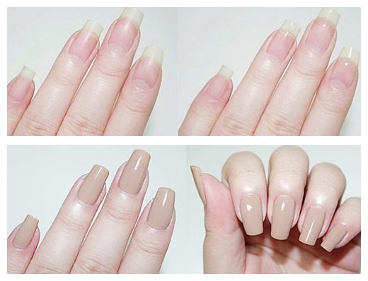 STEP2:相比起其他不能涂满指甲油的美甲来说,裸色显然涂满也不会有太大的突兀感。