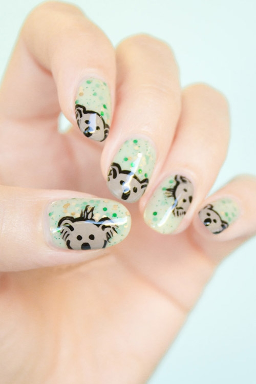 可爱考拉美甲图片教程 清新自然2014春季美甲