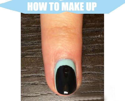 STEP2:将无名指用黑色指甲油画出企鹅的身体,注意要让指甲根部留出部分空白。