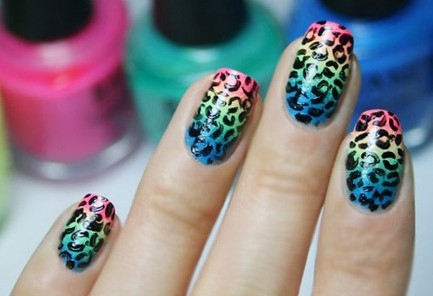 潮范渐变豹纹美甲图片 最详细的美甲教程大公开