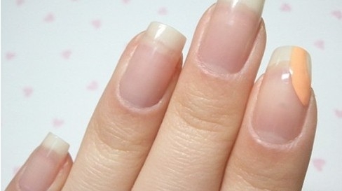 步骤2:用浅橙色指甲油将两条弧线间的空隙填满。