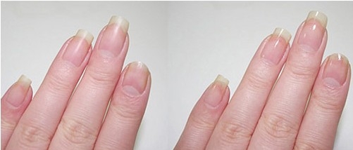 步骤1:将指甲尖端修平,然后给指甲涂抹上一层底油。