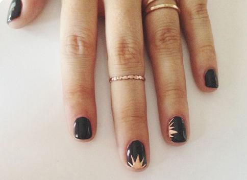 完成图:指甲以黑色做为底色,稍显叛逆、个性,完美的彰显出独属于你的那份气场,但是搭配裸粉色的剪纸,又多了份甜美、可爱的感觉。