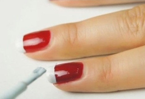 Step3:用乳白色指甲油涂抹指甲的顶端部分。
