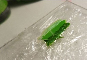 STEP 1:如图所示,把从深到浅的绿色指甲油涂抹到保鲜膜上。