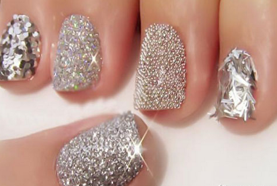 这款银色的美甲有没有闪到你的眼,用银色闪片和碎钻都运用到指甲上,很上档次,喜欢泡夜店的MM们必备亮甲,在灯光的照耀下美美的。