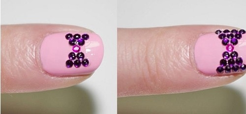 第三步:选择紫色的水钻,贴出蝴蝶结的的星座,造型可以自己DIY。