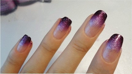 第五步:均匀的涂抹在渐变的区域,让你的指甲更闪,这个美甲就完成了!