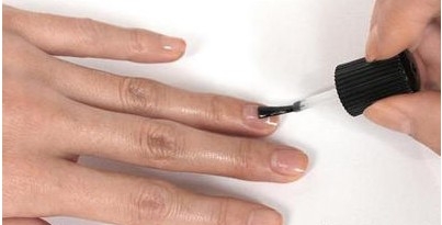 STEP1:在涂抹指甲油之前先给指甲涂上一层护甲油来保护的指甲。