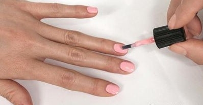 STEP2:在整个指甲床范围内均匀涂抹上一层粉红色指甲油。