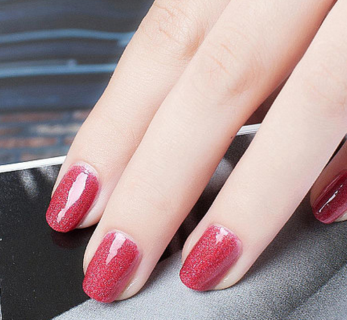 这款玫红色的美甲非常的特别,甜美高贵的闪耀色彩,更显少女情怀的青春气息,甜美闪耀的玫红让你更显美丽,很适合情人节约会哦!