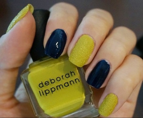 搭配要点:墨绿色的光面美甲+黄色鱼子酱美甲,两种不同质感的混搭。