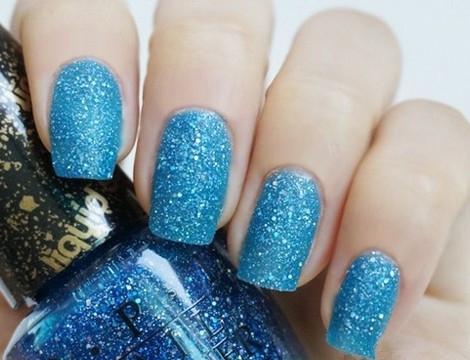 搭配要点:蓝色闪粉磨砂美甲,超级有质感,很显手白哦!