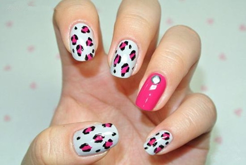 甜美粉红豹纹美甲图片 简单教程轻松DIY