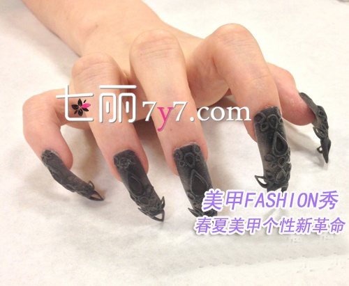 时尚点评:这款黑暗城堡的美甲正如名字般,在众人眼前展现出了中时机欧洲古堡的画面,神秘的黑色假指甲,由于黑暗中张开的锋利魔爪在悄悄的向你伸来。