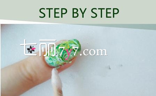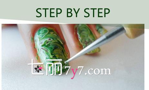 步骤三:接着用画笔将指甲油晕染开,以打圈的方式做出自然涂鸦的感觉。