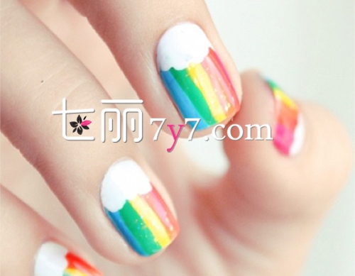 将所有鲜艳的色彩运用在指尖上,由于七种颜色的彩虹跳跃在指尖上,为你时刻带来阳光,多种色彩的拼接效果看到心情就愉悦,让你不禁感叹生活的美好。