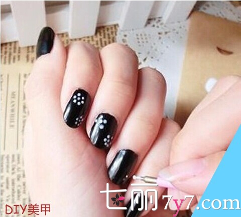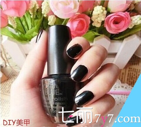 STEP1:将指甲油袖修剪整齐,然后均匀涂抹上黑色的指甲油。