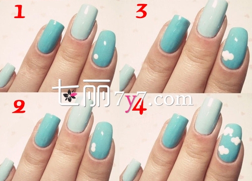 指甲上画花教程图片 专属夏日的蓝天白云