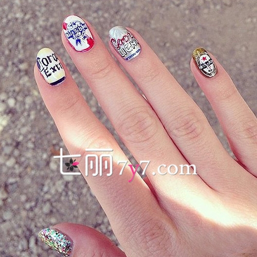 啤酒彩绘美甲图片