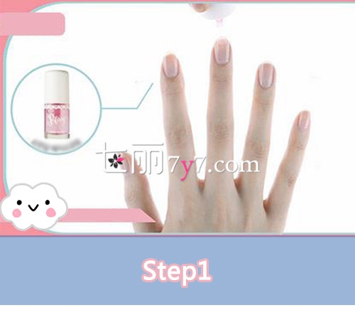 STEP1:美甲之前,一定要涂上一层透明的指甲油,不仅可以更好的上色,还能避免指甲油对指甲的伤害。