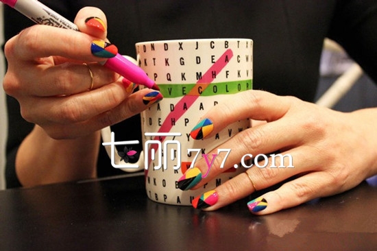 几何美甲怎么做,几何美甲教程,撞色美甲教程