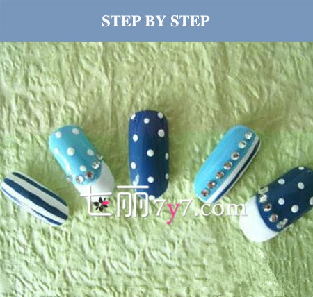 夏天来了,美甲也要换换风格,蓝白相间的海军风美甲让人爱不释手,加上波点的设计更加又活力,下面带来法式美甲教程图片,感受夏日的气息,一起来学学吧!