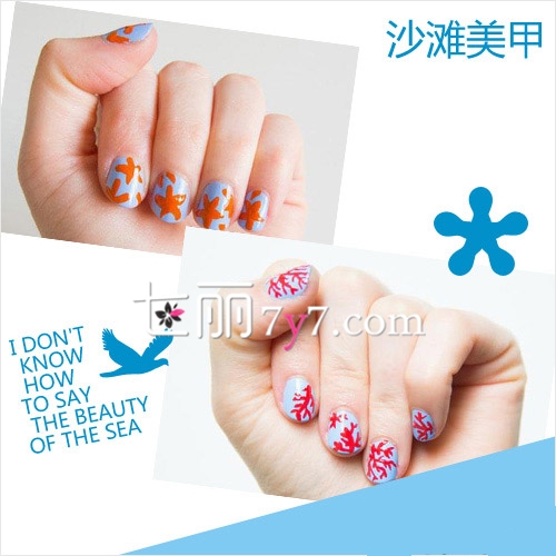 海星MIX珊瑚法式美甲图片 DIY教程沙滩畅玩不可少