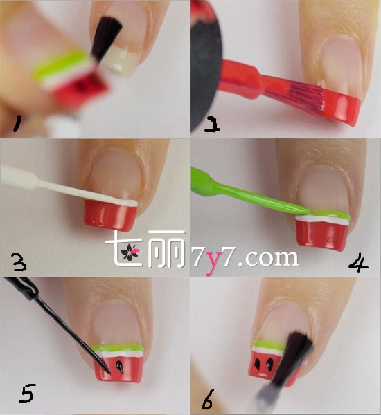 完成效果图:这款清凉的西瓜美甲非常逼真,在炎热的夏季给人带来一丝凉爽,简单的华发步骤,打造出不简单的造型,在指尖十分亮眼俏皮。