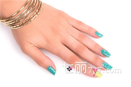 炎热的夏季,蓝色和绿色最能给人带来清凉之感。这里,小编给大家带来一款格子花朵图案美甲教程,有蓝有绿,小清新一族赶紧学起来吧!