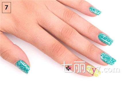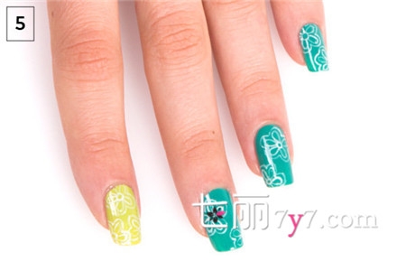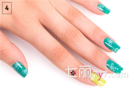 格子花朵图案美甲步骤要领: