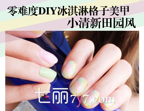 冰淇淋色的纯美是很多女生的心头好,除了衣服、包包外,不妨将指尖也弄成冰淇淋色主题吧。接下来带来详细的冰淇淋格纹美甲教程,整个操作毫无技术可言,但美腻了!