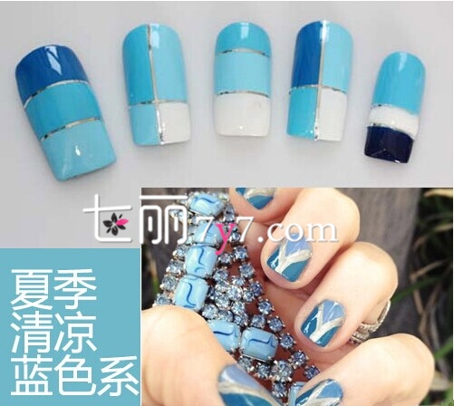 蓝色系法式美甲教程 夏季必备时尚美甲DIY
