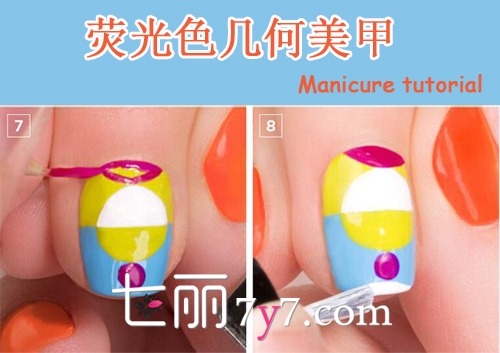 DIY荧光拼接几何美甲教程 出乎意外的指尖舞台