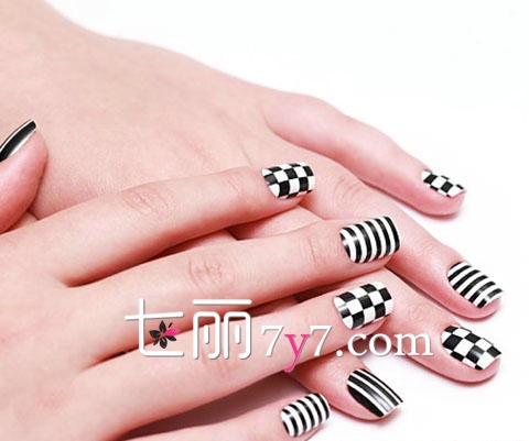 时尚黑白美甲贴片图案 黑白美甲图片最经典