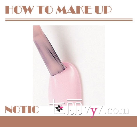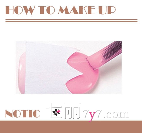 取出一小张较硬的纸片,将纸片剪成两个弧形,覆盖在指甲上,用较深的粉色涂抹未遮盖的地方。