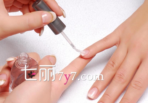 涂有色甲油时,先将指甲油握在手掌之中,用手心的温度给甲油加热,让甲油的温度接近体温。然后沾取适量的指甲油,刷子和指甲面呈65度角,轻薄、均匀的涂上一层。等第一层干透之后,再刷第二层,让颜色更加饱和。需要注意的是:如果有色甲油已经出现凝结的现象,就不能继续使用了。