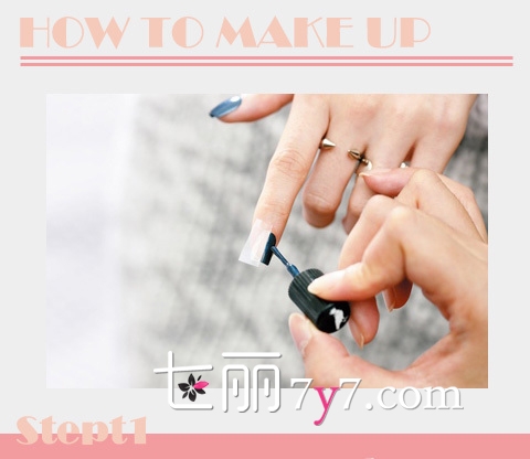 Step1:用透明胶竖着贴在指甲上,盖住一半或者更多的指甲。然后刷上自己想要的指甲油颜色。