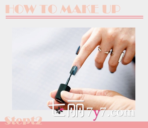 Step2:然后等指甲油干掉把透明胶撕下来,再将干掉的指甲油部分盖起来,刷剩余的指甲。等这边干掉后就可以撕下透明胶,看看两边颜色是否重合,如果中间有缝也没关系。可以用带珠光的指甲油填补空白,让指甲变成法式美甲。